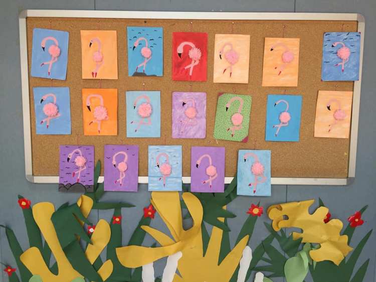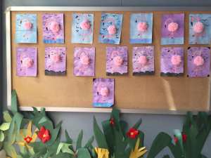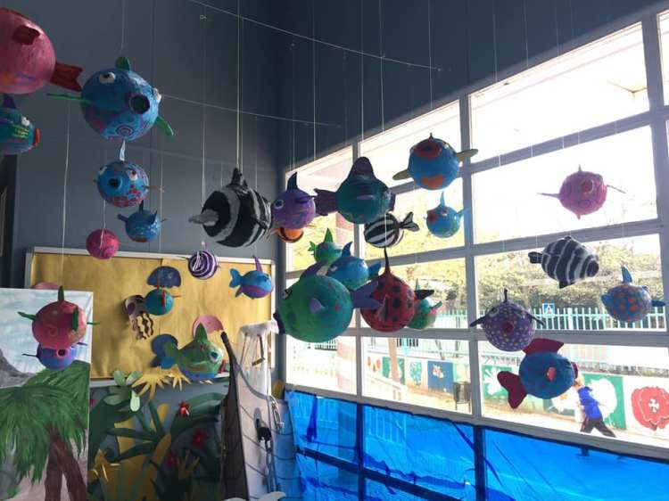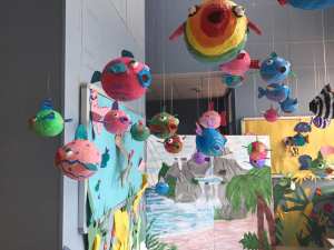 Mirad las obras de arte que hacen los chavales en la extraescolar de Arte y Creatividad. Han convertido el hall del cole en una auténtica pecera!!!