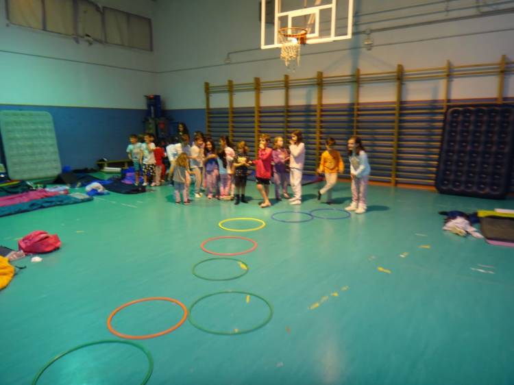 Según el planning previsto, queríamos hacer bastantes juegos, pero enseguida llegó la hora de la cena en la que nos pusimos hasta arriba de pizzas y solo nos dio tiempo a jugar con los aros a “Piedra, papel o tijera” y a bailar, por supuesto. Alguna de las alumnas más chiquititas del cole, hicieron una demostración más que brillante de sus dotes como bailarinas.