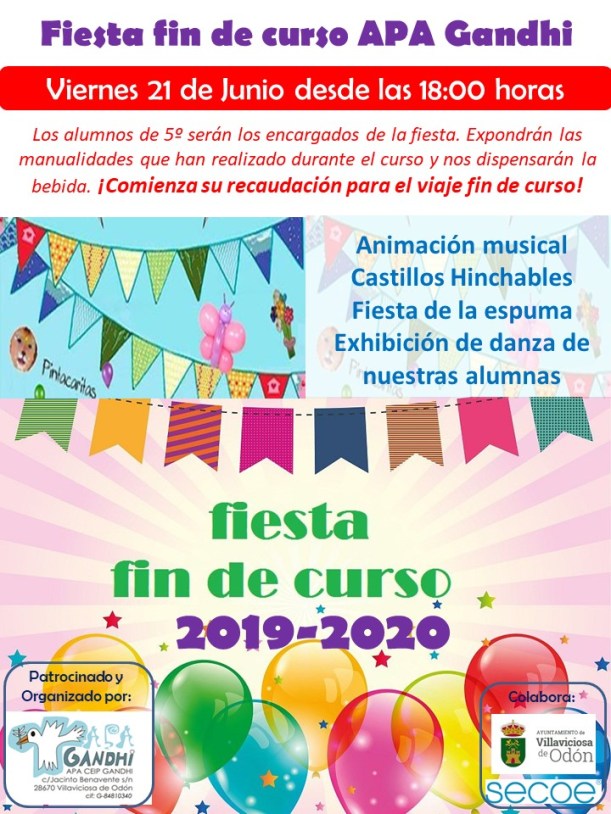 Un año mas, el APA PATROCINADOR de la Fiesta Fin de Curso 2019 – 2020.