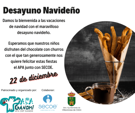 Esperamos que nuestros niños disfruten del chocolate con churros con el que tan generosamente nos quiere felicitar estas fiestas, siempre por parte del APA junto con SECOE.
