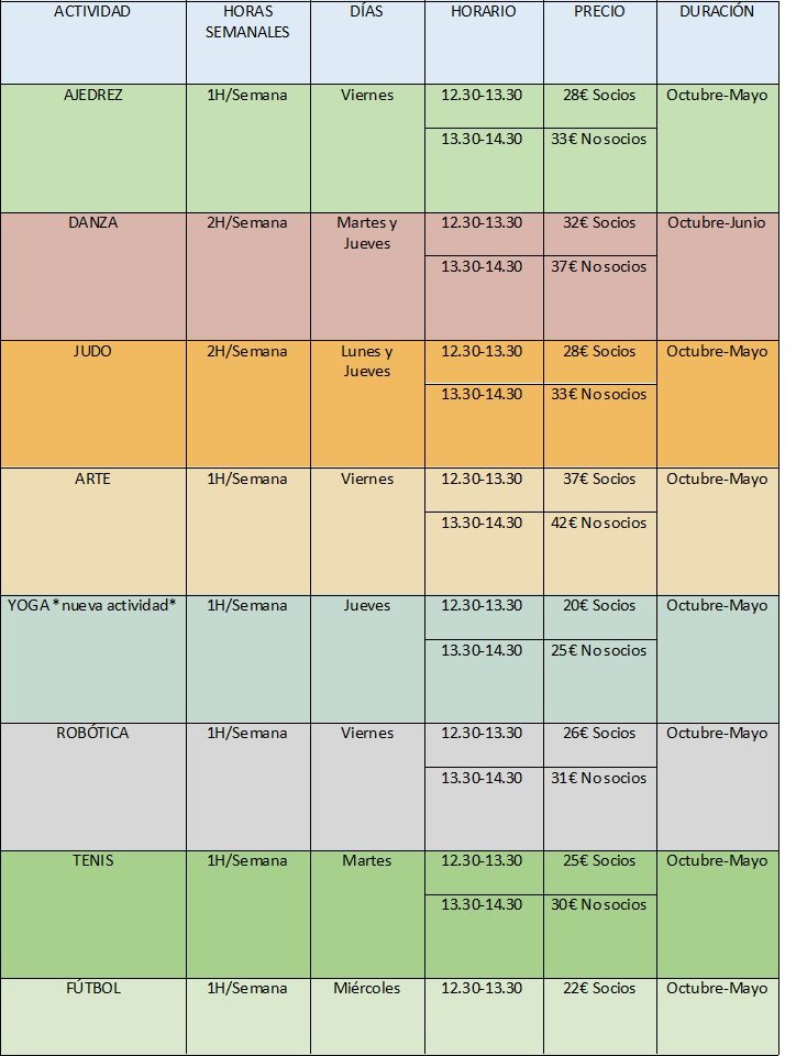 Os recordamos que son a partir de el segundo curso de infantil (a partir de 4 años), y se imparten en el horario del patio de comedor.